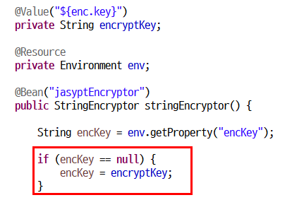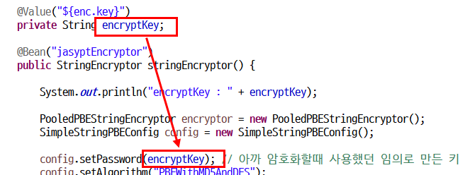 환경변수 encKey의 변수값을 읽어와서 setPassword에 넣어주고 있구요.