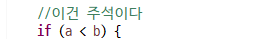 주석도 마찬가지로 // 옆에는 한 칸을 띄는게 표준 코딩인데 아래와 같이 띄지않고 작성하였다 치더라도