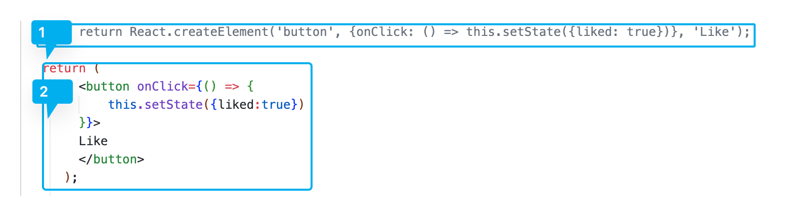 즉, 아래의 1번 방식은 2번 방식처럼 표현할 수 있다. 좀 더 익숙한 버튼 태그 html 방식으로 표현되기에 가독성이 좋다.