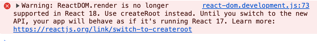 위 소스가 정상 실행은 되지만, 브라우저 콘솔 오류가 나는 이유는 문법이 리액트 18 버전에서 달라졌기 때문이다.