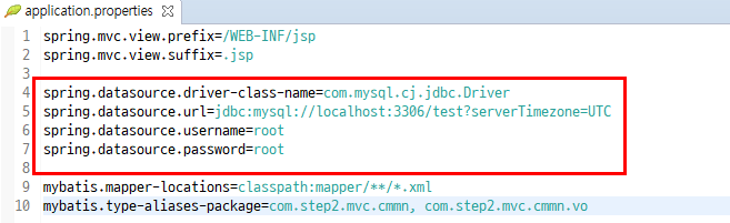 application.properties 파일을 열어보면 DB 연결설정 정보가 있는데요.