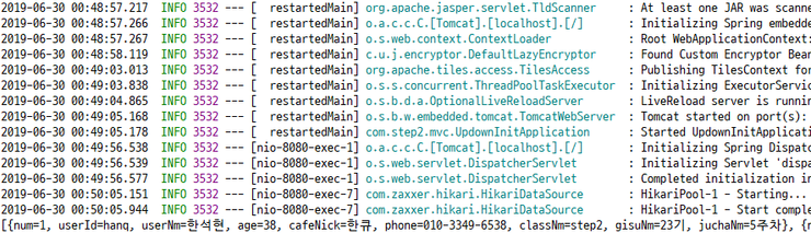 설정이 완료되었으면 스프링부트 앱을 실행시켜서 정상적으로 톰캣에 올라가는지, 디비 데이터를 조회오는지 확인하면 됩니다.