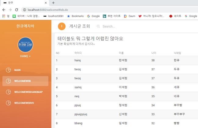 제 STS에서는 콘솔에도 별다른 오류가 찍히지 않았으며, 레프트 메뉴 클릭시에도 정상적으로 디비 데이터가 조회되는 것을 확인할 수가 있습니다.