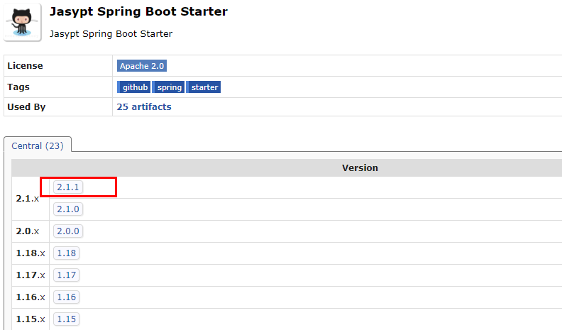 검색 결과에 여러 항목이 조회가 될텐데 저희는 스프링부트에 적용할거니 Jasypt Spring Boot Starter 를 클릭해서 안으로 들어갑니다.