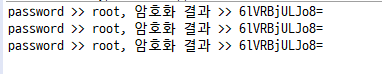 똑같은 문자 root를 암호화했는데 출력할때마다 암호화 결과가 매번 달라지네요?